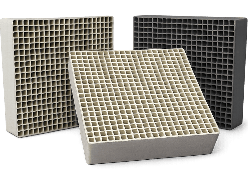 Структурированный катализатор с нанесённым активным слоем на керамической подложке ячеистой структуры.