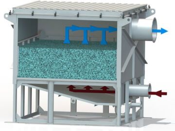 Модуль хемосорбционный используется в процессах,во время которых существует потенциальная возможность утечки хлора. Выходной патрубок модуля хемосорбционного подключается к системе вытяжки таким образом, чтобы весь загрязненный поток в случае возникновения аварийной ситуации проходил через модуль. В нормальном режиме работы существующая вытяжка должна обеспечивать циркуляцию воздуха по байпасной линии с целью увеличения ресурса работы сорбента. Применение данной технологии несет сравнительно небольше издержки и позволяет эффективно и просто устранить аварийные выбросы хлора.