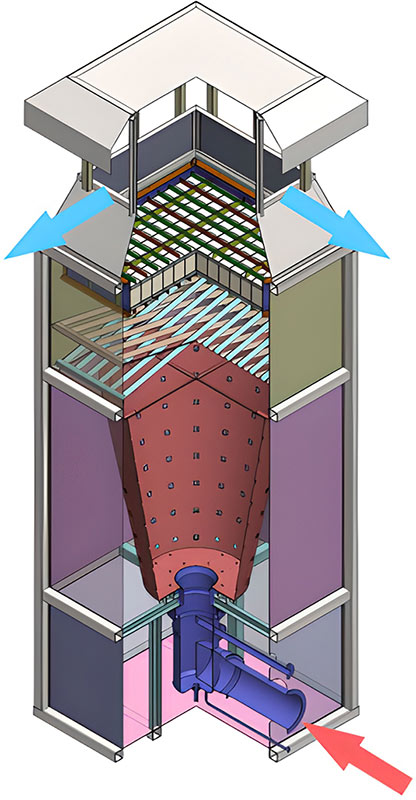 После охлаждения газовых выбросов до 400°C, они попадают в модуль катализа, где происходит реакция разложения оставшихся загрязняющих веществ с участием катализатора.